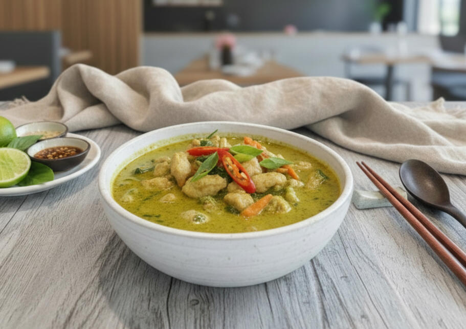 Green Chicken Curry (Hot) .................... $17Thai green curry paste cooked with chicken in coconut milk and mixed vegetables