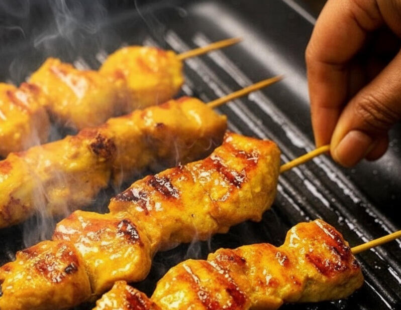 deep-fried crumbed chicken breast topped with traditional satay sauce