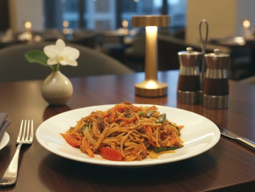 Chicken / Beefstir-fried noodles with fish sauce, mixed vegetables, fresh chilli and basil