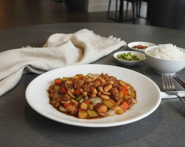 Sweet and Sour Pork ............................ $15deep-fried lightly battered pork, with red capsicum, pineapple and onions in traditional